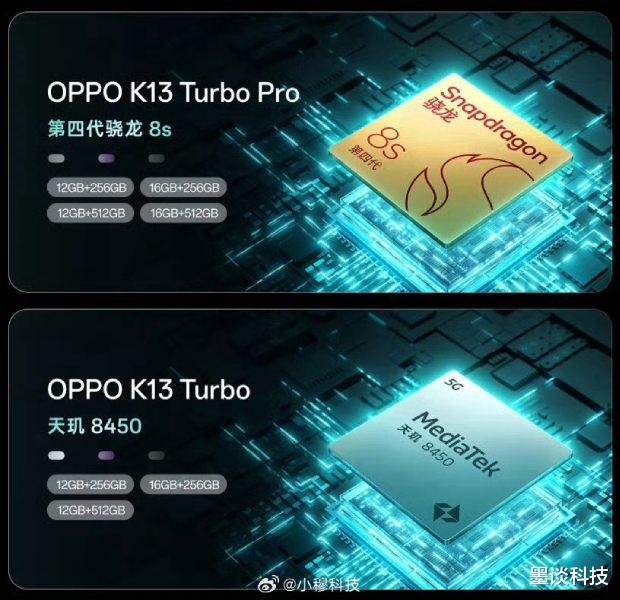 K13 Turbo:采用联发科Dimensity 8450芯片,基于TSMC 4nm工艺,配备8个Arm Cortex-A725核心和Mali-G720 MC7 GPU,支持旗舰级AI功能和高效能表现,游戏体验同样流畅。